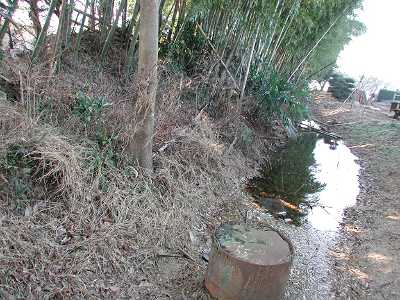 | 訪問記 | [2003/12/22]つい先日近くを通りかかったとき、畑の向こうの屋敷を囲む巨大な土塁が目に飛び込んできた。今までも何度と無くここを通っていたのになんで気が付かなかったのだろうか。そのことが信じられないくらいに大きな土塁だ。しかし、ここら辺りに城館址があるという話は聞いていないし、土塁の斜面がかなり急なので新しく築いたものだろうとは推測された。 屋敷の前で作業をされていた奥さんに伺ったところ、西側の畑からの土埃と風を防ぐために10年ほど前に土塁を築き次いで3年ほど前にさらに高く積み足した新しい土塁だという話を聞けた。屋敷の北側の土塁の外側は水堀のようになっているが、これは周囲の微高地から水が集まってきてしまうので隣家が掘った排水路だということだ。う〜ん、こういうことは直接聞いて確認しないとうっかり城館址かと間違ってしまいそう。 |