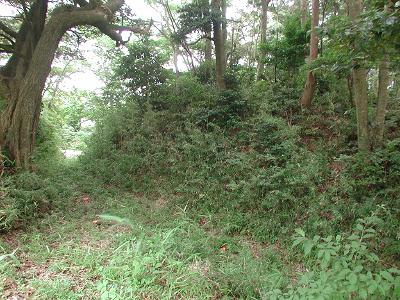 山田城へと続く尾根道の登城路に構築された連続する三つの堀切。堀切と堀切の間は土塁に囲まれた郭になっているという。東方の山田城および山田集落を防御するための施設と考えられる。鉾田市の石崎勝三郎さんが確認した堀切で、2005年7月現在では遺跡としては未登録。