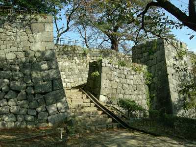 | 訪問記 | [2006/10/15]桜御門の桝形の石垣は近世城郭の造形美を体現している。快晴の空に白い壁が映えていた。本丸の北側と西側下は白河バラ園になっているが、この時期は秋バラの季節らしく土塁上へもバラの香りが届いていた。 |