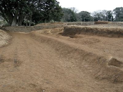 | 概説 | 市道の改良工事に伴い行方市遺跡調査会が調査を行ったところ、集落群、墓地とともに12世紀末から14世紀初めと見られる城郭の遺構が確認されたという。これまでに文献などから、縄文期の遺物出土は予想されていたが、中世期とみられる城郭の確認は予想外だということだ。城郭は、今回発掘した部分の他にも周囲の台地全体に広がっていると見られるらしい。また、城郭の一部は粘土層まで掘り切られているとのことで、このような例は県内ではあまり見られないという。これは表層から粘土層までの深さが約1mと浅かったことが理由と考えられているとのこと。[常陽新聞WEB版2月17日HEADLINE NEWSより] |