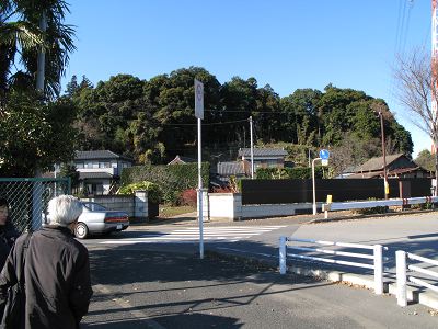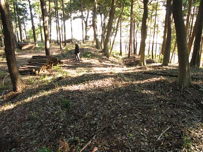 | 訪問記 | [2006/12/18]航空写真を見ると城址のある台地先端を遠巻きにするような帯状の区画が見られる。そこには松ヶ崎新田とか根戸新田といった近世の新田地名が落ちている。おそらく、この帯状の区画は東側を流れる大堀川から水を引き込んだ水堀だったと推測できる。方形の主郭を中心に広い腰郭が周囲を取り囲む構造である。腰郭東端には古墳を利用したと思われる物見台がある。また、その近くにはかなり深い井戸跡も残っている。全体として遺構の残りはいまいちである。 |