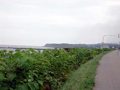 | 訪問記 | [2001/7/9]教育委員会で聞いたのですが、台場のある松屋崎の突端へは雑草が深くて簡単には近付けないそうです。 |