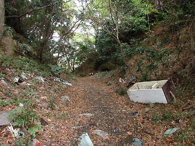 西側の堀切はゴミ捨て場