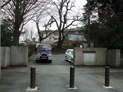 二の丸の枡形虎口は県立水戸第一高等学校正門として残る(本城橋から見る)