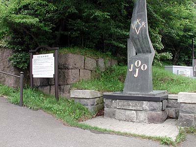 南部坂を上がったところにある入口の石垣。手前はここにNHK函館放送局があったことを示す記念のモニュメント![]() |