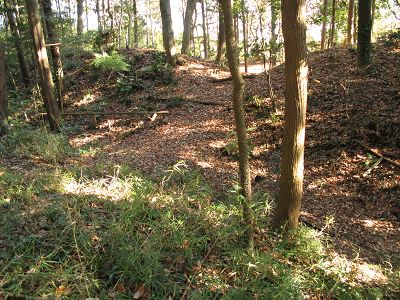 | 訪問記 | [2006/12/18]こぢんまりとしているが遺構のクッキリとした良いお城。2つの土橋が2郭西側の堀に架かっているが、どちらか一方は後世のものだろう。南の土橋には強力な横矢が掛かっていて防御性は高い。手入れが行き届いていることから、地主の方の愛着が感じられる。 |
