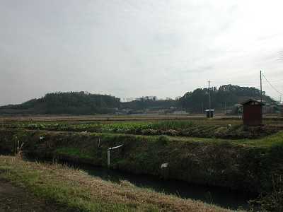| 訪問記 | [2003/12/29]島崎城の南西約600mに位置し、島崎城の関連施設か。セブンイレブン裏から国神神社の方向へ登っていく道路の南側に今は使われない旧道があり、地元の人は「ニイダテノサガ(ニイタテの坂)」と呼んでいたそうだ。ということは、この坂を登り切った辺りが「ニイタテ」ということだろう。台地最上部には半円弧を描く幅20mほどの畑地に囲まれ一段高くなった部分があり、堀と郭の遺構を思わせる。 |