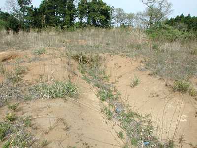 | 訪問記 | [2004/04/26]遺跡のほぼ中央部に位置する第I郭は約85mX75mの方形の区画の南西角付近からは丁寧に埋葬された馬1頭の遺体が出土しているそうだ。殿様の愛馬だったのだろうか。 |