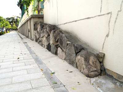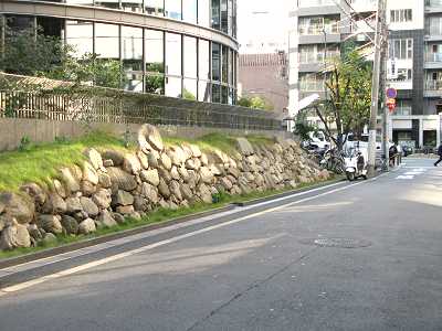 街中の石垣3態 1.ドーンセンター北側の石垣(秀吉時代)(クリックで拡大) ![]() 2.追手門学院小学校東側の石垣(秀吉時代) 3.日経新聞社南側の石垣(徳川幕府による) |