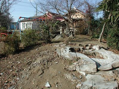 | 訪問記 | [2002/12/31]集落の東側を最近新しい道路が通ったようだ。『筑波町史』によると、土塁遺構は北東部、雷神社、南西部の3ヶ所に一部残っているとあったが北東部のものはほぼ湮滅していた。堀跡は水田として使われてきたが宅地などになりかなり湮滅している。しかし、雷神社南側には明瞭にのこり、横矢とも思える形を残している。『村史千代川村生活史 第一巻自然と環境』p278の地図では北側を「大島城」、南側を「大島館」と分けて記載しているが別名ということでよいと思われる。 |