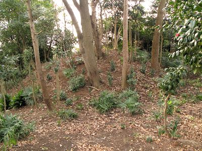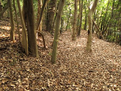 遺構中最大の土塁。周囲には堀跡も認められる![]() |