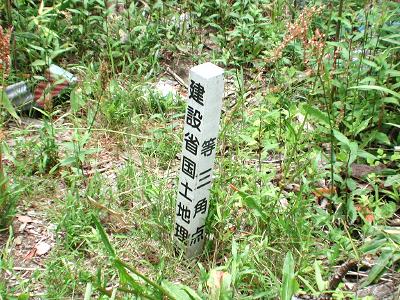 | 訪問記 | [2004/05/31]途中まで上がってみたが上はそうとうなブッシュのため三角点までは到達できない。冬場にもう一度来ることにした。 [2005/06/07]地蔵院側からでは藪がひどいので今日は北側の道からアプローチ。未舗装路を上がっていくと右手に明らかな高まりがあった。上がってみると使われていない民家か小屋がある。玄関前に三角点の標柱があった。周囲の雑草を除けて、三角点の指標石を探しかけると目の前を大きなハチが!スズメバチの偵察飛行に恐れを成して標柱の写真だけ写して退散した。 |