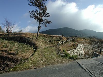 | 訪問記 | [2003/01/02]台地先端部は畑になっている。畑の東側に住宅があり、畑と住宅の間は細い道になっているが堀切の跡だとされている。どうでしょうか。 |