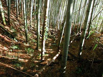 [2004/06/13]慈眼院の裏の溝状遺構を見てきた。非常に浅い溝のため堀跡かどうかは判断できない。それよりも慈眼院の150mほど北側にある熊野神社南側の土塁がなんだかあやしげ。熊野神社参道に沿って東西に伸びるのだが、慈眼院方向から上がってくる道に対して横矢のような折れがある(上の地図に土塁状遺構と印した)。 |