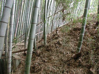 | 訪問記 | [2003/01/26]閉鎖されたディスカウントショップ「ジャンボ」駐車場南側の竹藪の中に大きな堀跡がある。しかし、土留め工事などでかなり土が動かされている様子。なお、松葉様というのは字名でこの地に同名の祠があったことに由来するそうだ。この館の主に因んだものだったのだろうか。 [2003/02/03]県道を挟んだ西側の畑と民家の間に土塁が残る。左手の畑には縄文土器片が多く見つかる。 |