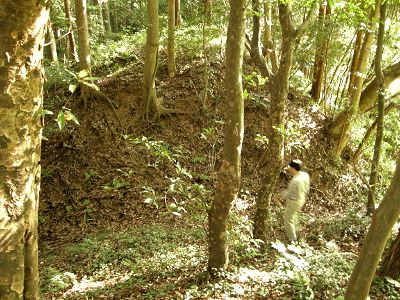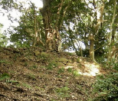 天守台(?)から3郭西側の土塁を見下ろす![]() |