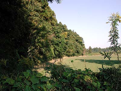 | 訪問記 | [1998/03/06]写真1.および2.は土塁の西端の堀尻が谷津田へ落ち込むところ。街道閉塞用土塁が谷津と谷津を結んで築かれている様子がわかる。しかしこれが土塁の一部とは気付く人は少ないでしょうね。 |