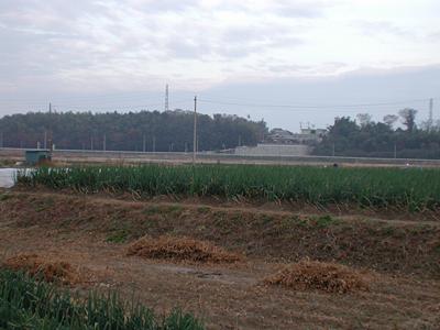 村田館(手前の畑地)から四保城を臨む![]() |