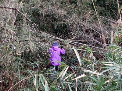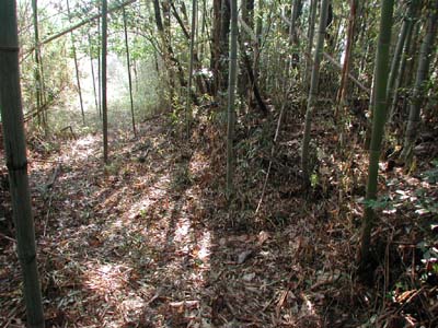 異次元の世界へ吸い込まれるように正面の薮を突き抜けると、そこには中世の古道(馬の背道)が待っている(わくわく!)![]() |