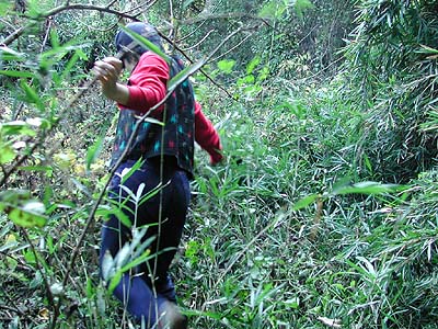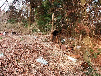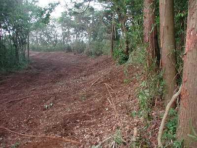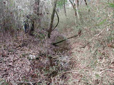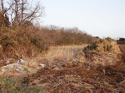 | 訪問記 | [2000/11/05]前回('98/03/30)は中央の虎口までいけたのに、今日は薮がひどくて近付けなかった。『美浦村お散歩団』一番の勇気ある団員でもさすがに前進できず。次回は逆の西側から攻めてみよう。 [2001/03/06]今日は西側から中央虎口をめざす。土橋の両側の堀はゴミ捨て場になっていて悲しい。畝堀を探すという段階ではなかった。 [2001/05/01]今日は勇敢な友人たちのおかげでとうとう畝堀まで来れた。しかし、なんとか分かるという程度の盛り上がりでした。 [2003/04/13]雨の後に畝堀を見ると畝と畝の間に水が溜まっている。虎口北側の堀は南側の自然の谷津に比べ水気の少ない人工堀のため、この畝は往時も保水効果を狙ったものだったのかもしれない。 [2004/07/01]先日雀久保土塁について気になることを耳にしたので、休みの日に現地を見てきた。土塁の北端部分に土盛りして競走馬育成牧場の走路にする工事が行われていた。牧場関係者は、「阿見町によると土手は阿見百景に指定されているので南側は壊してはいけないが北側は壊すことになる」と言っていたため、阿見町の郷土史研究家O先生にお知らせして教育委員会・文化財審議委員の方々に調べていただいた。それによると、確かに土塁の一部はやられっちまったが、ごく一部であること・全体としては現況のまま残ることなどから致し方ない範囲かといった感想をいただいた。この工事に伴って現在土塁の東側の藪が全て取り払われ、土塁の全長に渉って形状が見られるようになっている。南側部分については破壊は無いとのことだったが、中央虎口の横矢土塁はごっそり削られていた。平日は重機が入って危険だが、日曜日などに見て頂きたい。 |