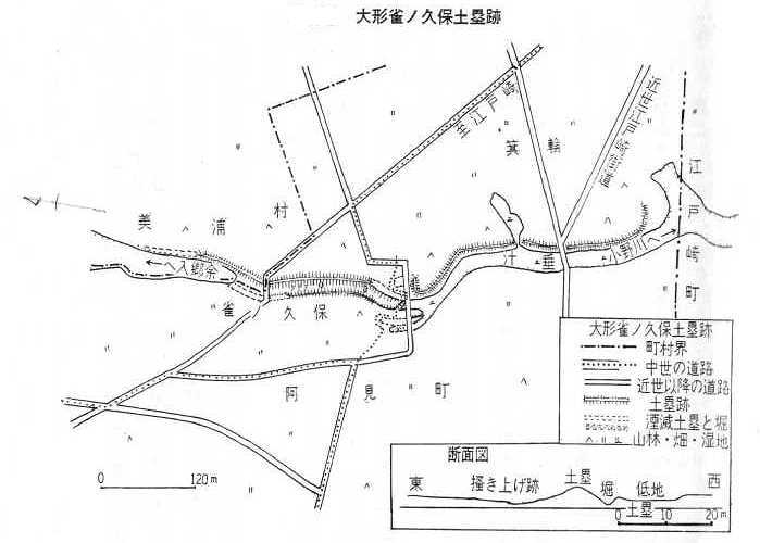 雀久保土塁縄張図(『阿見町史』より)(クリックで拡大)![]() |