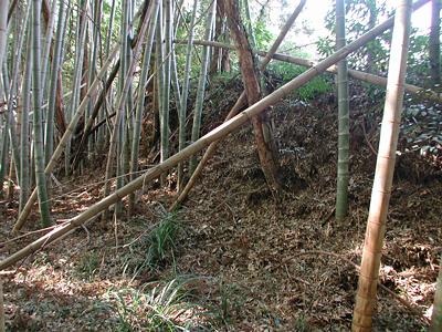 高田神社東側の郭。右手は高田神社側の森(北側からの眺望)。![]() |
