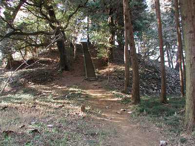 | 訪問記 | [2004/02/15]玉里村南端近くの愛宕神社周辺が館跡らしい。急な階段を上がっていくが高所恐怖症のため一目散に階上まで。いったん平坦になって周囲は畑や墓地、そして正面には愛宕山古墳がある。古墳の頂上はたいして広くないのでここは郭としてよりも狼火台や物見台として使われたと思われる。このシチュエーション、藤代町の岡城にそっくり。 |
