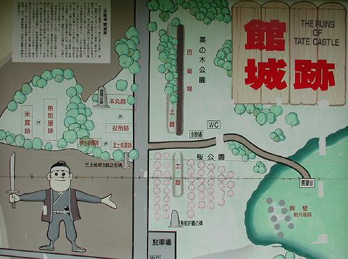 | 訪問記 | [2001/06/04]数年前に来たときには無かった丘の下の城門ができていた。 [2003/08/18]厚沢部町郷土資料館へ寄って館内を見学させて頂いた。ありがとうございました。館城は昨年、松前城の関連史跡として国指定史跡に認定されたとのこと。今後本格的な発掘調査が行われるとのことです。 [2007/09/01]午前中市立函館博物館五稜郭分館の最後の特別展第一部を見に行った。午後はFさんの用事に便乗して江差までドライブ。帰りに館城に寄る。最近の調査によると箱館戦争時代の散兵壕と言われていた掘り込みはどうも攪乱の可能性があるらしいという話を聞いた。 |