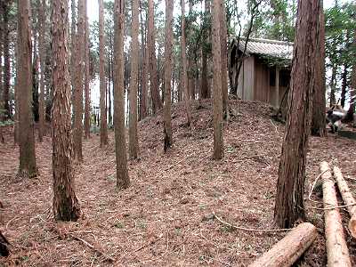 | 訪問記 | [2005/01/24]二つの堀切は食い違いになっている。2郭の虎口土塁は崩れているが桝形でもあったのかも知れない。1郭中央には土壇があり稲荷社が祀られている。もとは狼火台だったかも知れない。 |
