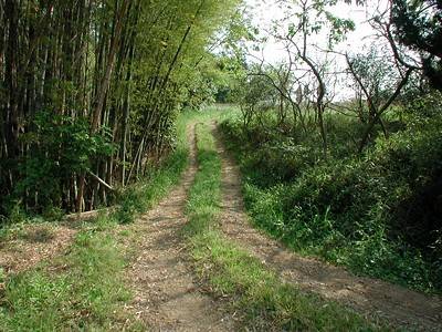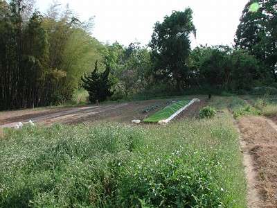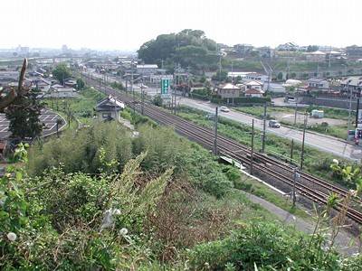 | 訪問記 | [2002/5/5]法光院裏手の畑で地元の方に場所を聞いたところ、「わたしはよく分からないのだけど」と言いながら南端部まで案内してくれた。歩きながら「これは本丸と二の丸の間の堀ですよ」と逆に説明すると驚きながらも喜んでくれた。現在南端部は土取りのため断崖になっているが、「わたしは子供の頃この下でよく遊んだが、そこはタテシタと言っていた」とよい話を教えてくれた。本郭の東側から南側にかけておよそ6m幅の帯郭が巡っている。 |