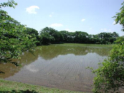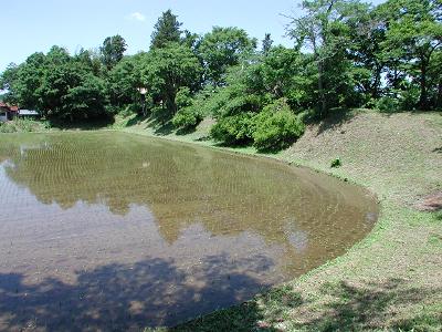 | 訪問記 | [2005/06/06]単純な方形館址だと聞いていたが郭の広さ、土塁の大きさはなかなか見応えがある。ちょうど田植えの終わった時期のため水が張られて美しい。夏は夏の、秋は秋の美しさが見られそうな場所だ。 |
