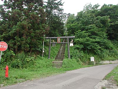 富川八幡宮。裏の杉林の中に土塁が残り、旧福山街道が通る。![]() |