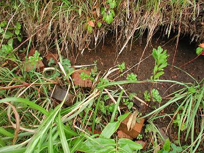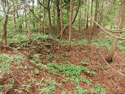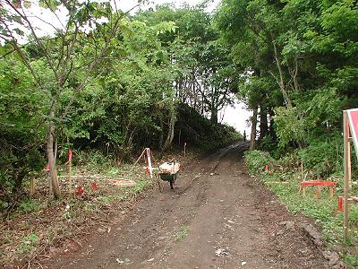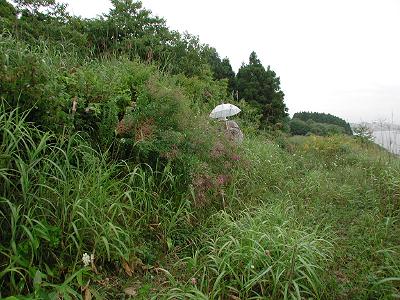 | 訪問記 | [2000/07/23]富川八幡宮側から登り、脇を掠めてしばらく行ったが二重構造の土塁や砲座などはよく分からなかった。 [2001/07/30]地元の郷土史研究家のOさんに案内していただき二段構え(外が低く、内が高い)の土塁を見た。砲座の海よりの部分は国道整備の法面工事で失われたが手前部分は残っているとのこと。天候が悪く今日は確認できなかった。 [2003/07/21]函館・江差道工事のための事前調査(道立埋蔵文化財センター)が10月まで行われている。縄文時代の館野遺跡の調査ということで、箱館戦争時代の土塁や砲座跡、中世遺構については調査の範囲外らしい。茂辺地に開拓使の煉瓦工場があった頃この地には民間の煉瓦工場があったそうで、砲座跡と思われていた盛り土部分も煉瓦工場の窯跡の可能性があるらしい。林の中に土塁・堀かと思われる意味不明の人工地形があったが、これも粘土採取場の跡じゃないでしょうかと聞いてがっかり。ただ、今回の発掘調査では青磁片が出土しており中世遺構が重なっている可能性もいまの時点では否定はできないと思う。そもそも「館野」なんていう地名が怪しくないか。鉛の鉄砲玉も見つかっているそうだ。青磁や鉄砲玉が出ている場所が単に縄文遺跡で済まされてしまって良いのでしょうか!?素人がいくらぼやいても残念ながら函館・江差道工事によって二重構造の土塁が間もなく失われることは確かなようです。 [2003/08/25]上磯のOさんと富川塁の最後の姿にお別れを言いに行った。雨の中、函館・江差道工事が行われていた。二重構造の土塁も風前の灯火だ。これが最後の写真になるかもしれない。土塁の内側は工事で削られ土層が見え、明らかに人工的に盛られたものであることが分かる。分かったときには湮滅が間近だ。海岸側の崖上へ出て、そこから南へ約100mほど行った右手の盛り上がりが砲座跡。雑草に覆われているが断面付近には煉瓦の破片が散乱している。砲座の土盛り部分を煉瓦窯に再利用したのだとOさんは言う。[その後の情報]土塁本体部分は辛うじて完全湮滅は免れそうだ。(2003/09/08) [2004/08/01]6月末にストーンサークルが見つかったということだったので見に行ったが日曜日で調査はお休みのためブルーシートが掛けられていて確認できず。昨年削られていた北側の塁断面(写真2の部分)には土が掛けられていて人工物の確認は出来なくなっていた。塁の北側から東側へ廻る堀・土塁を林の中に確認しておいた。地目境の「境界堀」という説もあるそうだが、この周辺の他の地目界には類似の堀・土塁はまったく見つかっていないそうだ。 |
