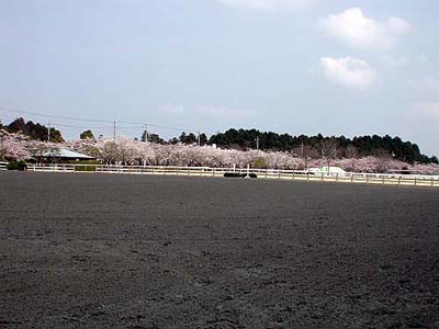 乗馬用馬場の周囲には桜が満開(2001/4/8)