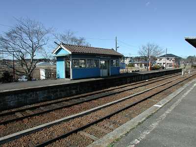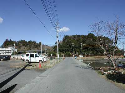 | 訪問記 | [2004/02/23]常陸小川駅に車を留め、駅長さんとお話ししながらしばし駅舎の雰囲気を楽しむ。駅から北へ進むと館の南側へ突き当たるが舘下の民家と県道の間の水田は堀跡だったように思われる。丘の上に稲荷社が祀られていて、その裏手に長径5mほどの楕円形の堀がある。でも何のための堀だろうか。城館の遺構かどうか疑問。 |