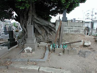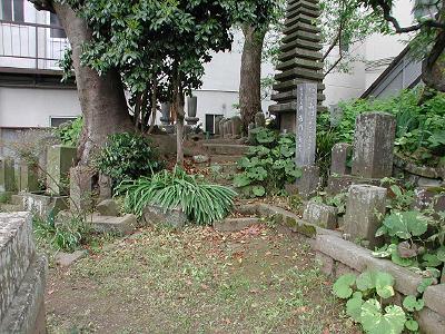 [27]神龍寺の土塁 土浦警察署西側の交差点の場所はかつて桜川本流が流れ込み、また四方からの水堀も合流する大きな水の滞留部を形成していた。その中央に中洲のような土塁があったことは複数の古絵図から明らかだが、おそらく水の流れをコントロールするための施設だと思われる。その土塁の南端がかろうじて神龍寺境内に残り、シイの古木が立っている。もう一本の土塁はそのすぐ近くから南へ向かって70mほどが墓地の中に残っている。 |