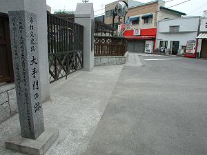 [13]外記(げき)門の内枡形跡 西郭北門。左手土浦小学校側が西郭と言われる武家屋敷。大手門はもとはこの門だった可能性もあるらしい。 |