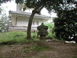 [3]信田氏の供養塔といわれる宝篋印塔 この宝篋印塔は昭和2(1927)年土浦城の内堀の泥を浚ったときに見つかった。菅谷勝貞が小田氏治の命を受けて謀殺した木田余城主信田範宗の亡霊に悩まされ、その供養のため土浦城の城塁上に建てたもの、かもしれない。 |