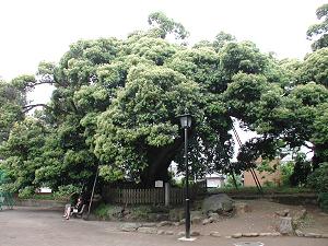[11]亀城のシイ 二の丸土塁上にあり、樹齢500年といわれる。県文化財。ひょっとすると、若泉三郎時代の築城の記念樹かも、という想像は楽しい(土浦城のページもご覧下さい)。 |