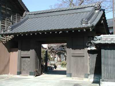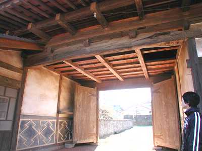 四足門と思われる。御当主によれば乳金物のいくつかは無くなってしまったとのことだ。八双の棘状金具は郁文館のものとそっくりだった。『土浦城とその城主たち』に写真が載っている。