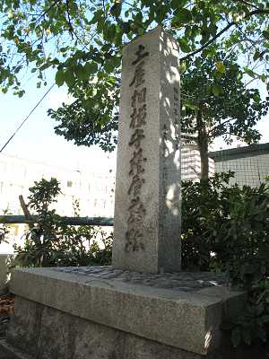 大阪市中央区瓦屋町2丁目。市立中央小学校南西角に石碑。