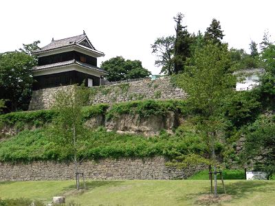 城の南面、かつての要害尼ヶ淵から西櫓を見上げる![]() |