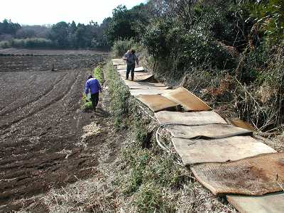| 訪問記 | [2005/02/21]遺構の全体像がまだはっきりしない段階で見に行った。南東側郭の南面する土塁は版築になっていることを確認。未確認の遺構もあると期待していったが、早速南西側の畑を取り巻く土塁と切岸下の帯郭や相横矢を確認。北西側は良く分からなかった。北東側にも四周を土塁で囲まれた郭遺構があるという情報があるも本日は時間切れで未確認。 [2005/03/14]前回見残した北東部と北西部を見に行った。北東部の台地張り出しには郭を囲む土塁と一段下に横堀を確認。北西側は堀切、中段の水堀、土塁などを確認。また、南西部郭の更に南側に十三塚様の十一個の一列に並ぶ塚群を確認。 [2005/03/21]今日は後新古屋館から北東方向へ延びる台地辺縁に沿って歩いてみた。後新古屋館の北側には谷津を隔てて龍貝館跡が隣接しているが、その台地基部に当たる西側縁はかなり土取されて形が変わっているが土塁らしきものが見られる。さらにその北側の谷津を隔てた台地縁にも土塁・堀と見られる遺構があった。どこまでが中世の遺構かまだはっきりしないが、涸沼側を監視できる台地縁に点々と砦が築かれていたことは想像できる。 |