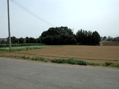 手前の畑地が館跡