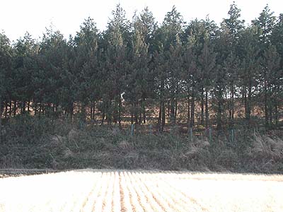 北側からの眺め。館跡は木立の向う側。でも、ゴルフ場となって完全湮滅。