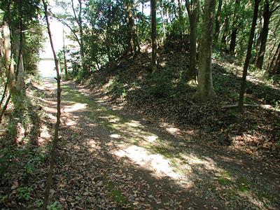 | 訪問記 | [2002/10/28]南の主郭内部は現在畑地でビニールハウスがたくさん建っている。その北側の堀切部は堀の中央に中州の土塁があるような作りになっている。北の主郭は現在宅地で真壁家の家臣団の子孫が住んでいる。この郭は五稜郭を変形させたような特徴的な形をしている。北・東・南に古い虎口があるがそれぞれに周到に横矢が掛けられている。特に南虎口の横矢には櫓台の大土塁が睨みを効かせている。 |