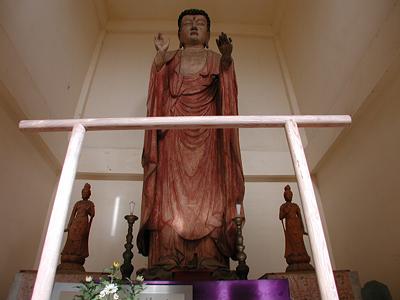 妙香寺山門脇にコンクリートで安置所が造られていた。