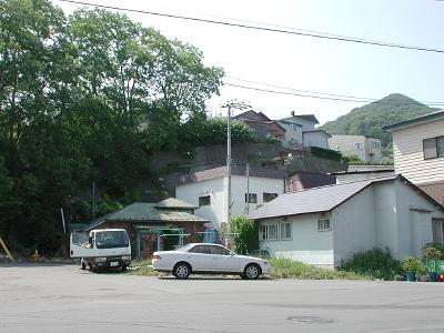 | 訪問記 | [2003/06/23]現在は住宅が密に建て込んでいて跡地に立つことはできなかった。台地下の函館漁港側から見上げるとそこは良い具合に張り出しているのが分かる。 |