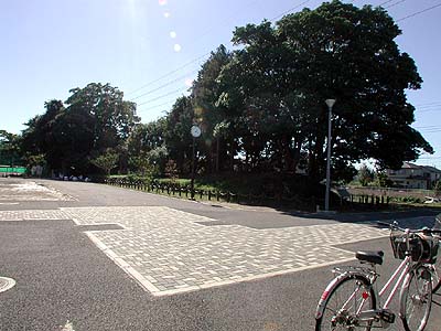 | 訪問記 | [2001/10/2]開発前は方形の堀や土塁が残っていたようだが、現在は中学校内に土塁が一部残るだけ |