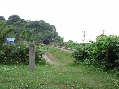 北海道渡島支庁森町鷲ノ木。JR函館本線桂川駅北西の湯の崎トンネルの上。